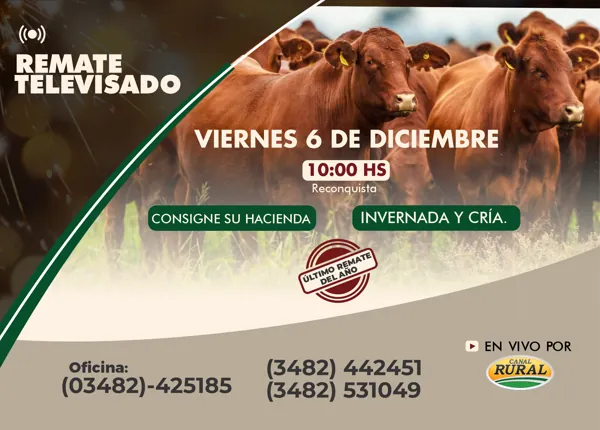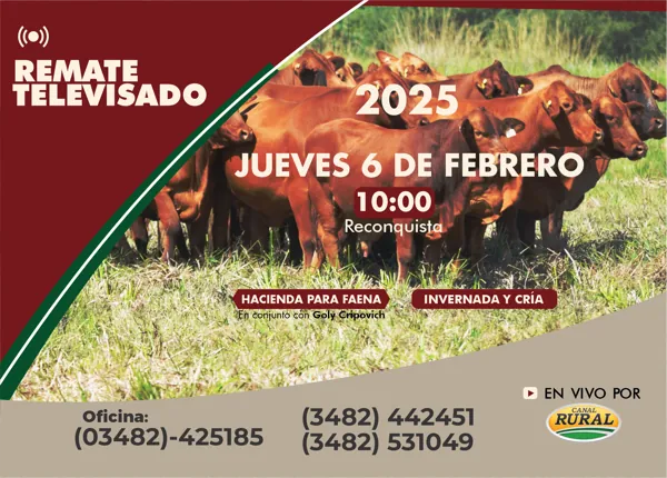 Remate Televisado 6 de Febrero 2025 10:00 Hs. 2.300 Cabezas